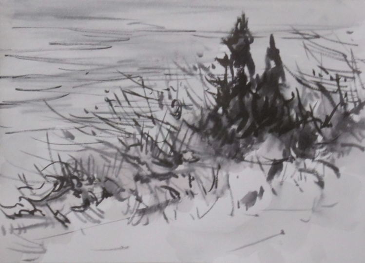 hs-452 最上川杉木立 2019.01.13 (筆ペン、水彩)