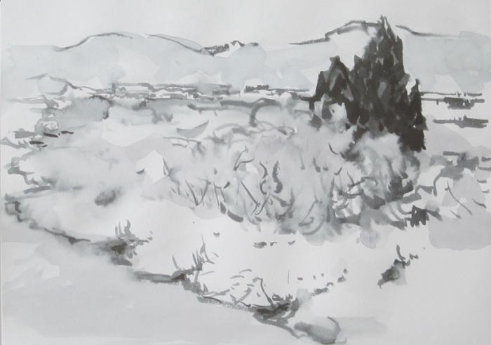 hs-703 雪止んで 2023.01.04(筆ペン、水彩)