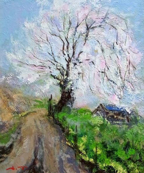 | sp-025 種蒔き桜の風景 F8 2011.09.18 (油彩画) |