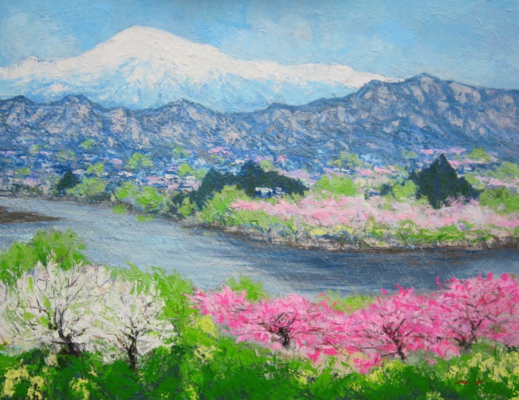花満開。山形の春の一風景を油彩画に表現してみました。