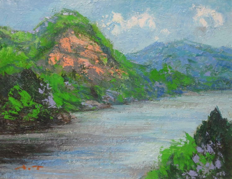 su-34 新緑最上川風景 F8 2018.05.18 (油彩画)