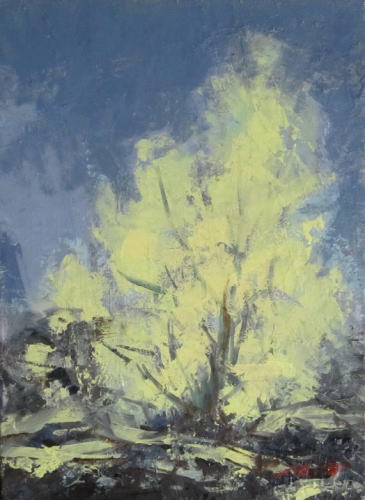 晩秋の冷たい雨降り時。銀杏の黄色い葉に絵心をくすぐられた。
