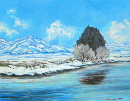 wi-43 最上川雪景 F30 2009.07.26 (油彩画)