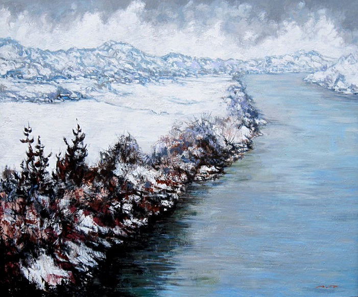wi-62 最上川雪景 F130 2017.02.13 (油彩画)